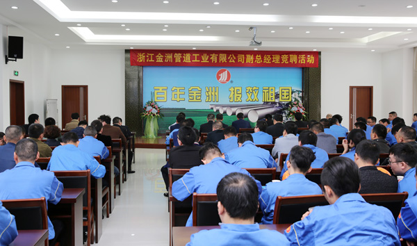 On the afternoon of November 12, Zhejiang Jinzhou Pipeline Industry Co., LTD. (hereinafter referred to as the pipeline industry) deputy general manager open competition activity was held in the second floor of Jinzhou Pipeline Lingang Park lecture hall, a total of five players to participate in the competition and make a speech, the company's board of directors and general manager of the pipeline industry a total of seven people as judges, the company's secretary and deputy general manager CAI Chao presided over the activity. More than 100 cadres and employees from various divisions and subsidiaries of the company attended the event.